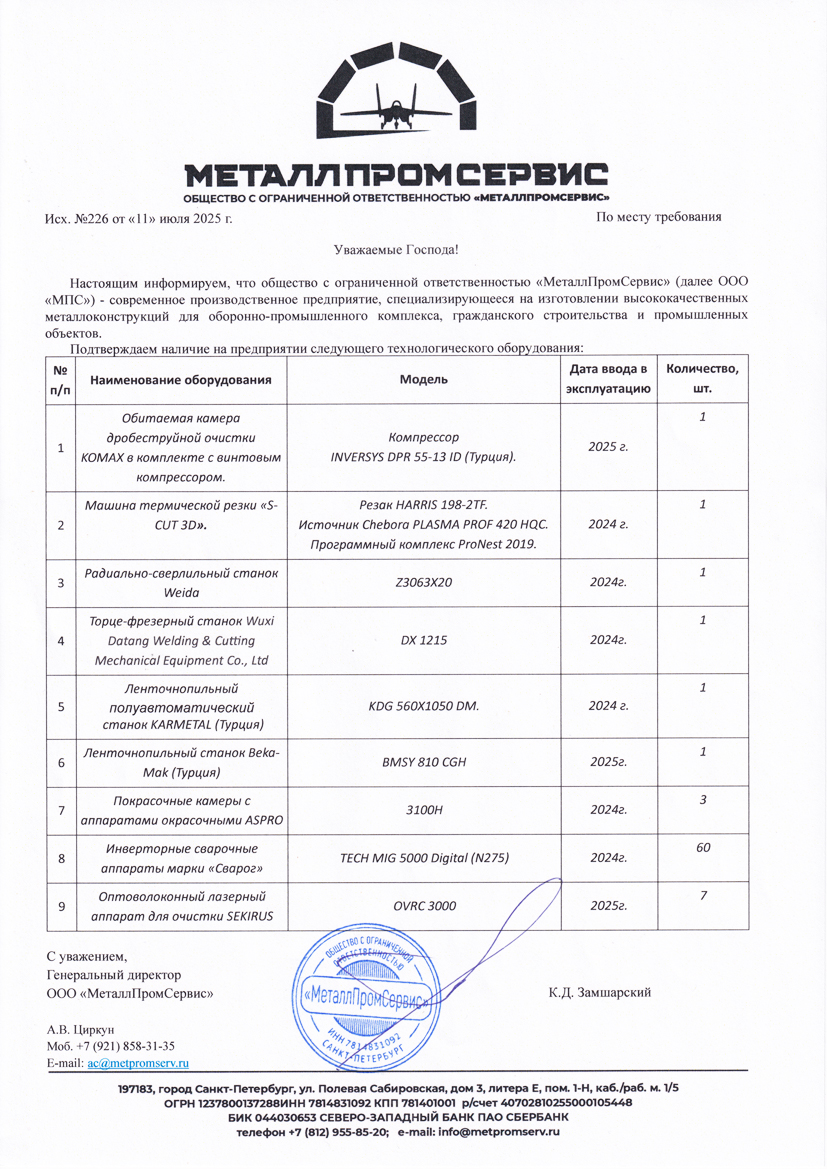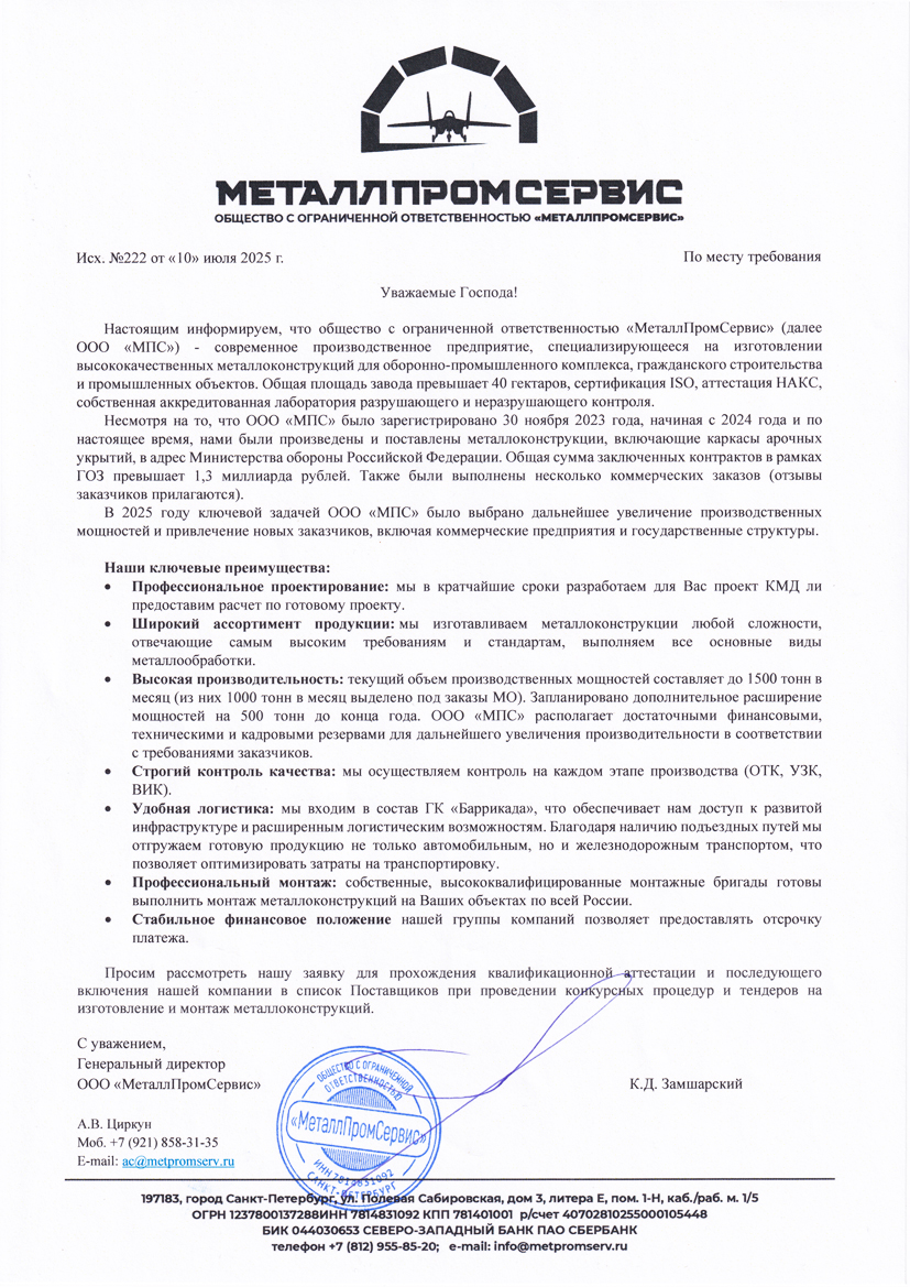 ООО "МеталлПромСервис" - современное производственное предприятие,